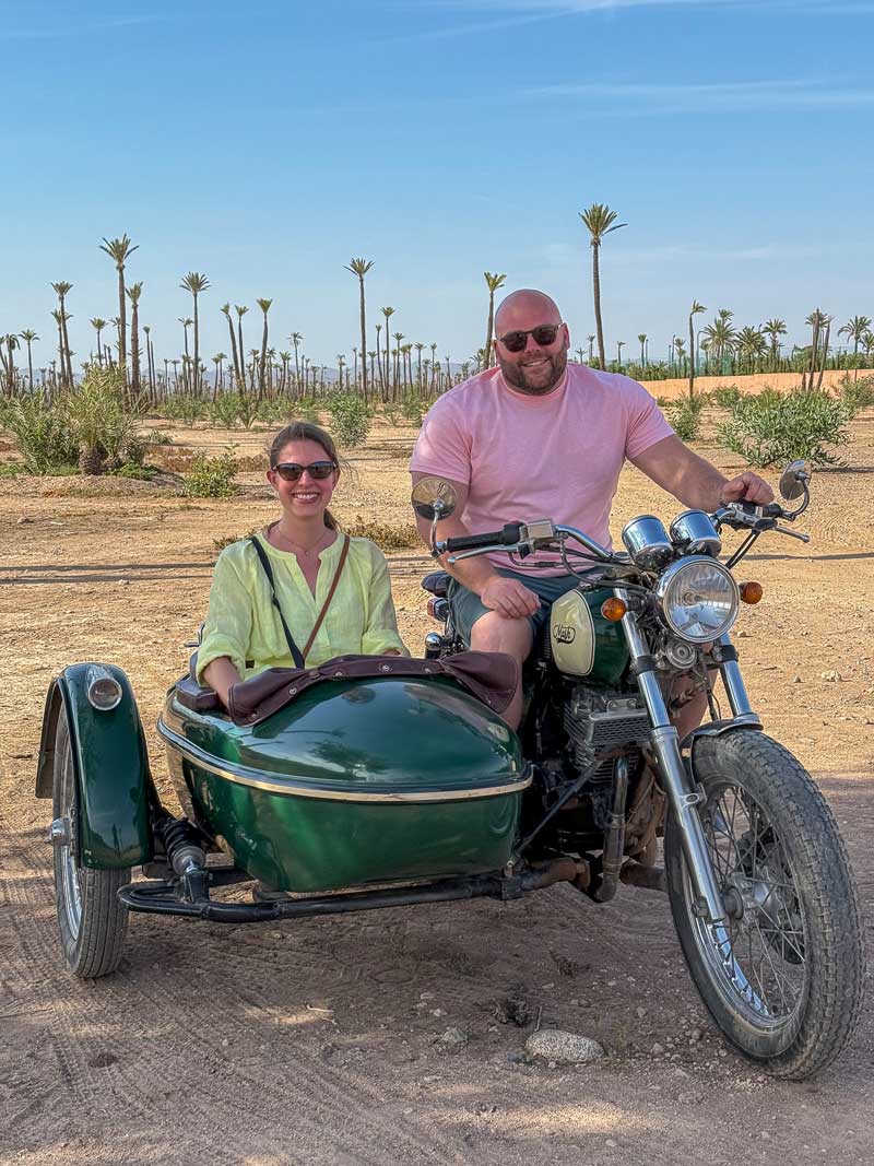 Later, we toured the city and the outskirts on a vintage motorcycle with a sidecar. This tour was definitely one of the major highlights and really gave us an authentic flavor of Marrakesh and what the city has to offer. Our guide was local, and he took us to more residential parts of the medina that really don’t get a lot of tourists. I remember meeting this woman, who was walking up to a fountain with a basket of laundry. She spoke absolutely no English but approached us, smiling because she was so happy to see foreigners learning about the culture and wanted to welcome us.